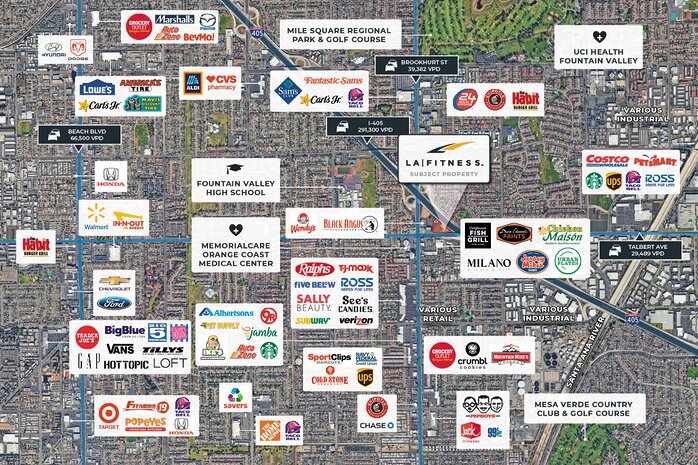 The NNN Fitness group of Marcus & Millichap is pleased to bring to market a generational Southern California single-tenant investment opportunity, prominently positioned with irreplaceable frontage on the 405 Freeway in the heart of Orange County. This corporate LA Fitness freestanding facility includes 2.87 acres along the busiest freeway in the world. The property features a rare NNN lease with over 9 years of lease term and structured 10% increases with no landlord responsibilities. With LA Fitness Corporate Headquarters just a few miles away, this location is one of the busiest clubs in the country, offering outstanding visibility and accessibility to all of Orange County.